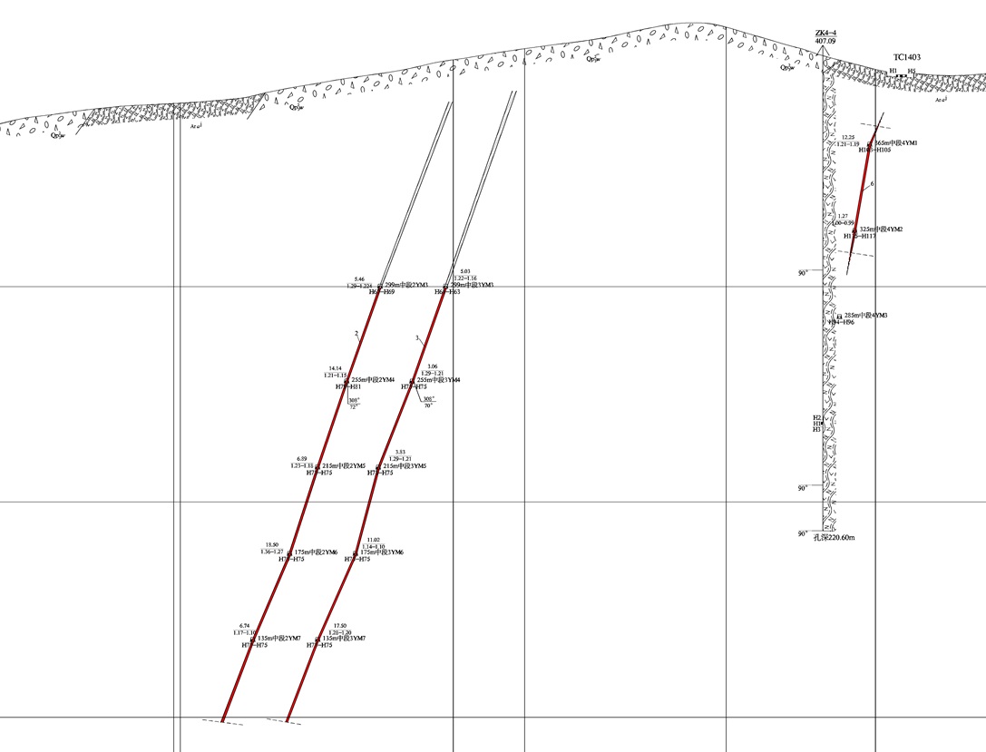 矿体特征:共圈定*条工业矿体,均赋存于角闪斜长片麻岩构造破碎带内,呈脉状产出,倾角70-80°。其中3条主矿体金资源量为2.5吨,占总资源量的80%以上,矿体厚度稳定程度为稳定型,有用组分分布均匀程度为均匀型。