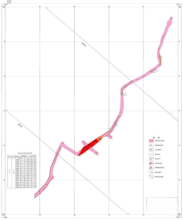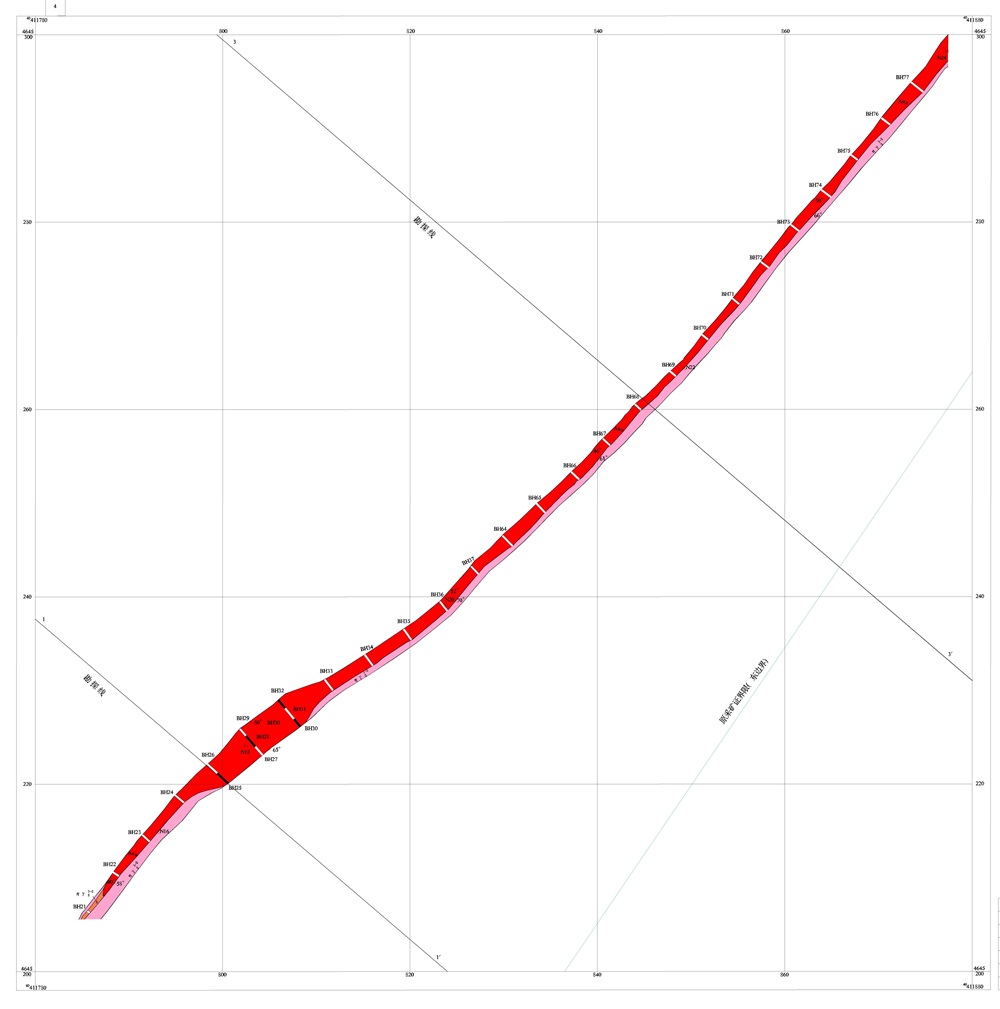 1号矿体(主矿体),位于矿区东南部,地表长 702m,控制最大斜深 123m,真厚度 0.75-2.20m(平均 1.43m,变化系数 29.78%),品位 61.35-78.83%(平均 72.36%,变化系数 9.10%),资源储量占比78%,由 10 条探槽、3 个钻孔控制;